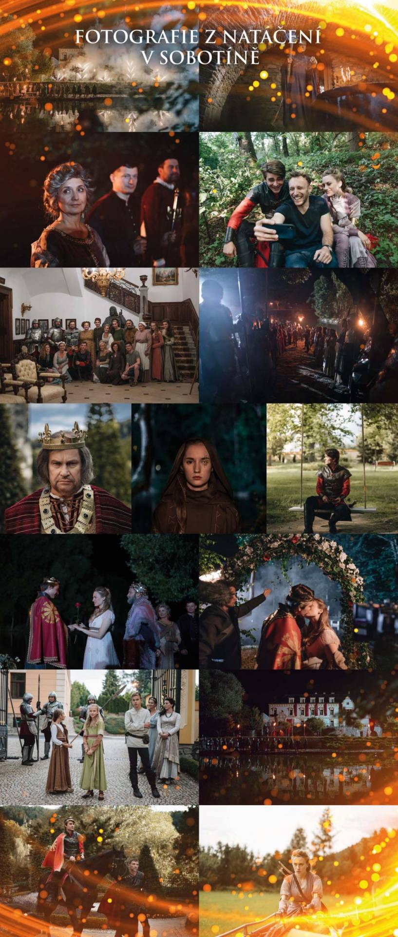 Unikátní výstava kostýmů v Zámeckém resortu Sobotín 05.02.2020 | Ostatní Tomáš Rak vložil článek 05.02.2020 11:55 V Zámeckém resortu Sobotín právě probíhá výstava kostýmů z pohádky Princezna zakletá v čase, která se tam v létě loňského roku natáčela. Vystaveny jsou originální kostýmy sedmi hlavních postav. Zblízka se tak můžete podívat na kostým Marka Lambory, Jana Révaie nebo Elišky Křenkové. Kostýmy budou v Sobotíně vystaveny do 6. března, kdy v resortu proběhne slavnostní předpremiéra pohádky. V pohádce si zahrálo i několik místních obyvatel a jednoho z králů pak i majitel Zámeckého resortu, který si tak zahrál krále na svém vlastním panství. V rámci natáčení byla nápomocna i regionální filmová kancelář Jeseníky Film Office, která pracuje pod Jeseníky - Sdružení cestovního ruchu a pomáhá tak vytvářet ideální podmíánky pro filmaře a producenty v regionu Olomouckého kraje. "Jsme štastní, ž ejsme mohli být součásti týmu, který pracoval velmi tvrdě a kreativně. Výsledek bude stát za to a už te'd se těšíme nba premiéru pohádky, která se z části natáčela právě v našem regionu." uvedl ředitel Jeseníky - Sdružení cestovního ruchu Mgr. Tomáš Rak. | |