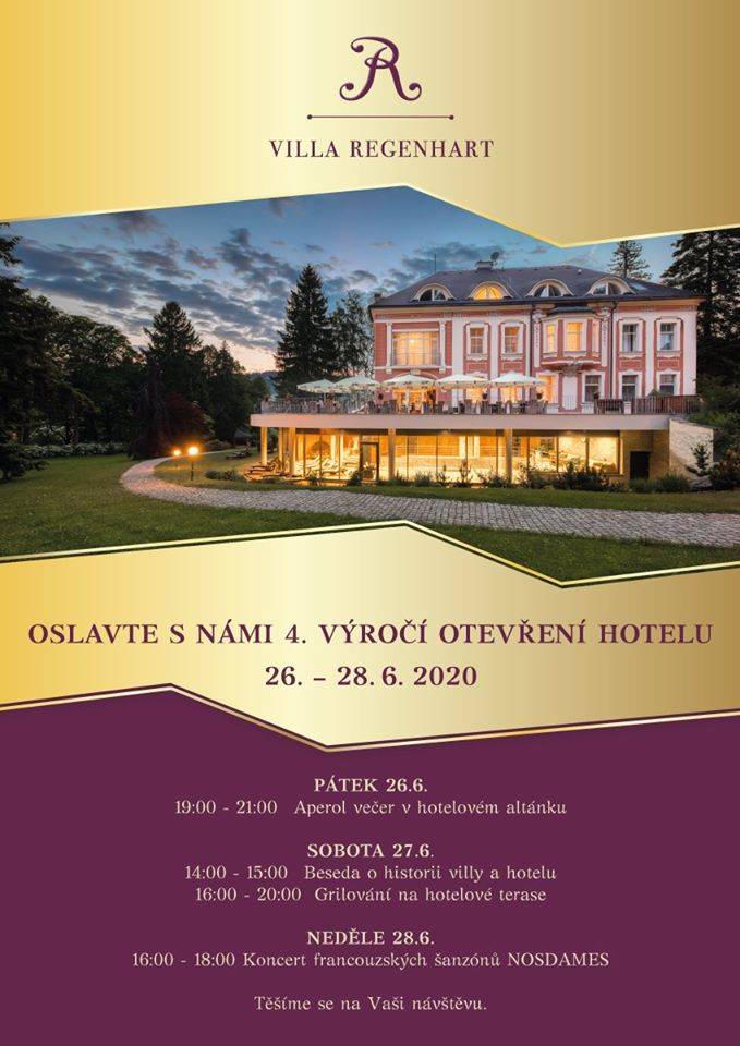 Villa Regenhart slaví 4. narozeniny 25.06.2020 | OstatníIva Glacová vložila článek 25.06.2020 10:48Přijďte oslavit 4. výročí otevření hotelu. Čeká na Vás zajímavý program po celý víkend.