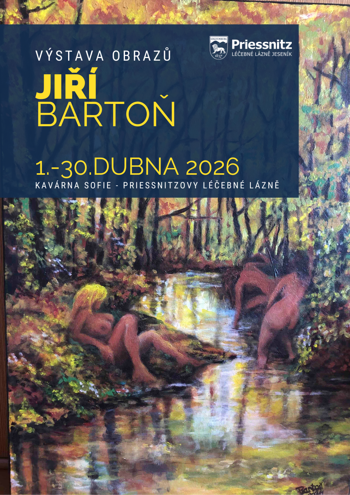 Adresa: Priessnitzova 907 / 20 79001 Jeseník Jeseník, Olomoucký kraj Česko Poslední změna: 06.03.2026 | sobota04.dubna VÝSTAVA - JIŘÍ BARTOŇ - Výstavy 04.04.2026 od 08:00 do 19:00 hod. Priessnitzovy léčebné lázně a.s., Kavárna SOFIE, Jeseník | Mapa Přijměte pozvání na výstavu Jiřího Bartoně, člena Jesenické výtvarné skupiny. Po celý měsíc duben bude vystavovat v prostorách Kavárny Sofie v Priessnitzových léčebných lázních Jeseník. Výstava je přístupná v provozní době Kavárny Sofie Jiří BARTOŇ Loštický rodák Jiří Bartoň absolvoval studium výtvarné výchovy na Pedagogické fakultě Univerzity Palackého v Olomouci u významného sochaře a medailéra profesora Zdeňka Přikryla. Pro svou tvůrčí cestu si však nevybral obor svého učitele, ale inspiroval se jeho náměty. K těm hlavním patřilo zobrazení ženského těla jako nejkrásnějšího přírodního výtvoru. Po příchodu do Jeseníku se jako učitel gymnázia začlenil do zdejšího seskupení Jesenická výtvarná skupina s více než sedmdesátiletou historií. A přirozeně svou figurální malířskou tvorbou do ní vnesl nový impuls, a mnohou veřejnost zvyklou na malby půvabné jesenické krajiny zobrazením nahého ženského těla překvapil. Rovněž jeho technika je v tomto ohledu novátorská, štětce totiž vyměnil za špachtle, které mu umožňují expresivnější vyjádření. Jeho ženské postavy tak ztratily samoúčelnou krásu dívek, které se na nás dívaly v 90.letech z obálek pornografických časopisů v každé trafice. Oproti tomu Jiří Bartoň své figury nesamoúčelně konfrontoval s ideály krásy různých dob (Věstonická Venuše), zasazoval je do historického kontextu - biblického (Zuzana a starci), bájeslovného (Leda s labutí), egyptské pyramidy se mu zrcadlily v dívčích klínech.....Jeho osobní fascinace mořem se projevila v řadě obrazů, na nichž se z oceánu rodí novodobé Venuše. V novém tisíciletí prošla jeho barevná paleta a náměty změnou, danou jak postupujícím věkem, tak vývojem společnosti. Ženská těla ubrala na svítivosti a zato přidala na dynamice. Jiří Bartoň je zachycuje při běžných, až banálních situacích - při sportu (volejbal), přiřazuje je k architektuře známé lokality (rozhledna Zlatý chlum nad Jeseníkem), ale přesto toto "zhrubnutí" dokáže zaujmout diváky svou vyjímečností jak na vlastních, tak kolektivních výstavách. Květoslav Growka Další výstavy 0% akce zítra