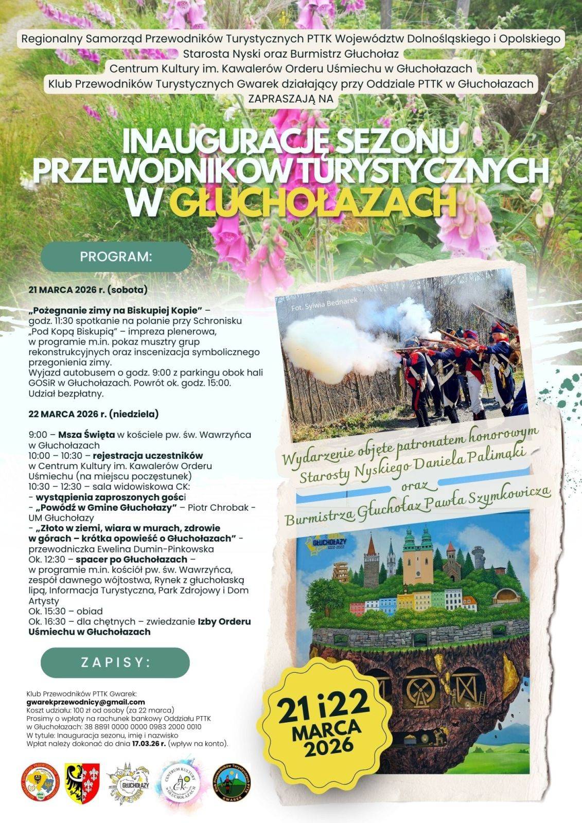 akce v sobotu 21. března 2026 | Inauguracja sezonu przewodników turystycznych w Głuchołazach Od 21.03.2026 08:00 do 22.03.2026 20:00 hod. Głuchołazy, Głuchołazy | Mapa | | | Sportovní klub moderní gymnastiky La Piroutte Jeseník Vás zve na závody moderní gymnastiky ve 21.03.2026 od 09:30 do 19:30 hod. Sportovní hala Mikulovice, Mikulovice | Mapa | | | Mše svatá - motlitba za vodu