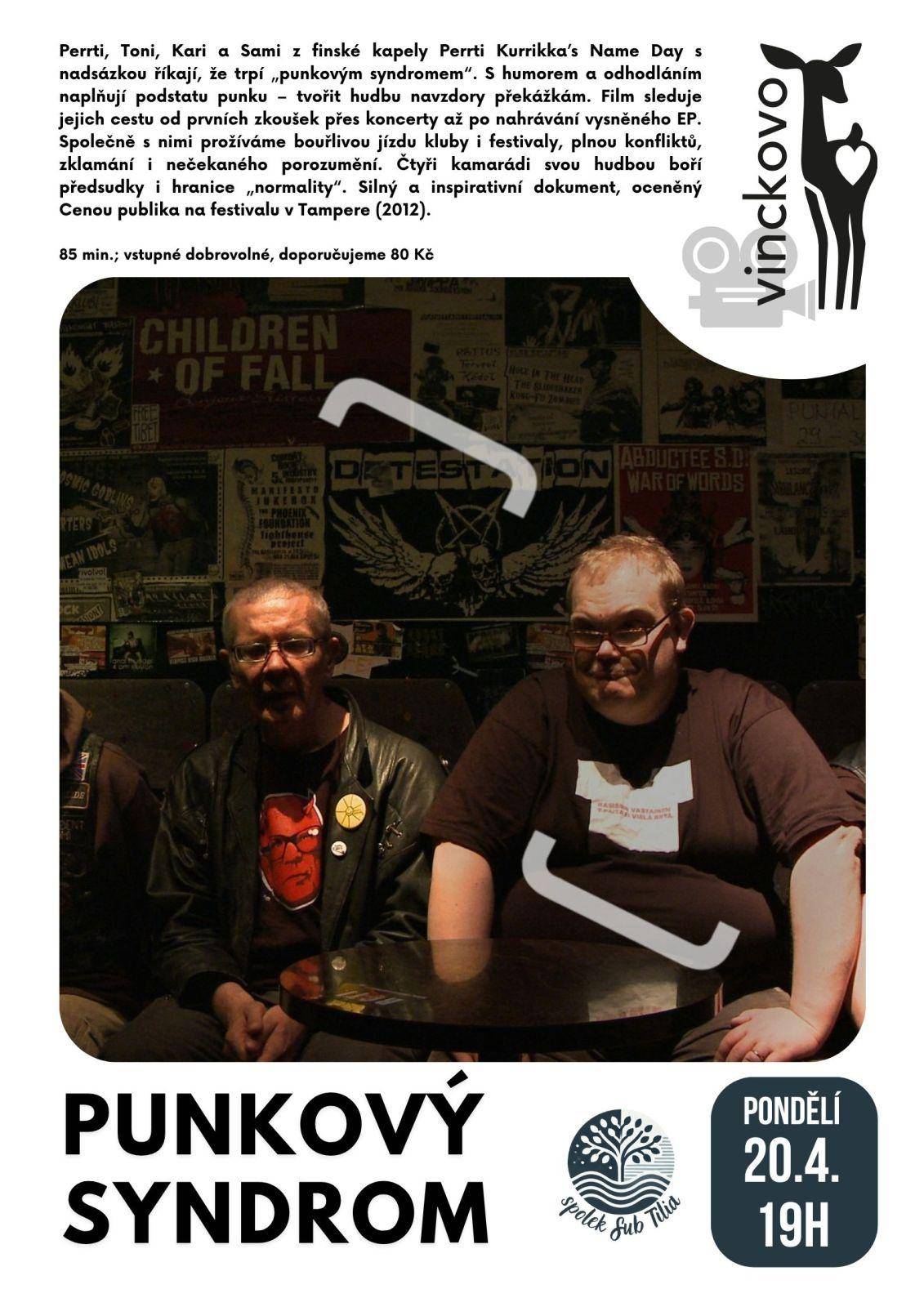Adresa: Priessnitzova 175 / 37 79001 Jeseník Jeseník, Olomoucký kraj Česko Poslední změna: 07.04.2026 | Promítání dokumentu - PUNKOVÝ SYNDROM - Program kina 20.04.2026 od 19:00 do 21:00 hod. Vinckovo kafe, Jeseník | MapaČtyři finští punkeři s mentálním hendikepem boří předsudky: od zkoušek k vysněné nahrávce a festivalům, humor i syrová pravda. Vstupné dobrovolné. Další program kina akce v pátek 10. dubna 2026 | Komedie/Česko/2026/101 min