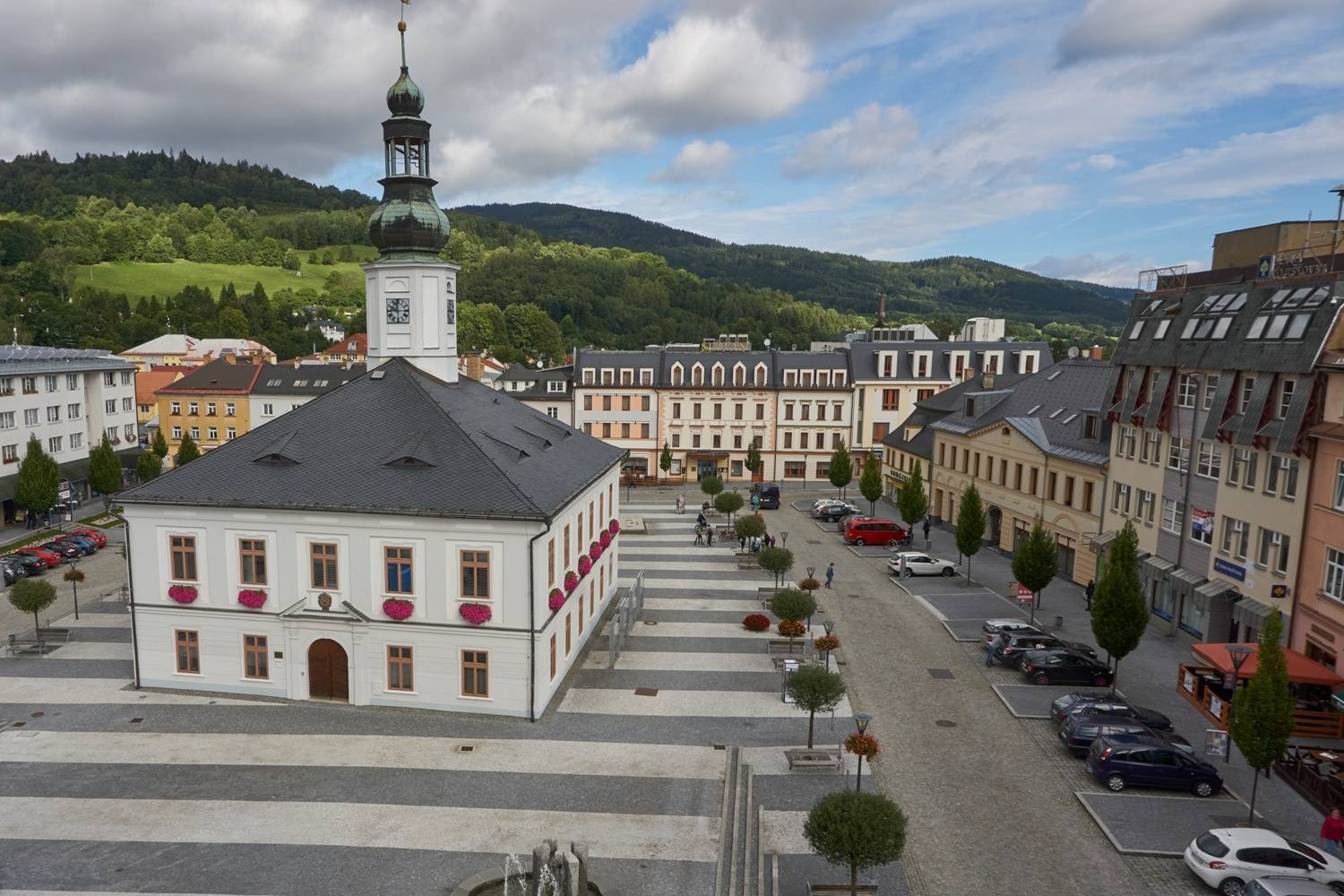 Dominantou náměstí je renesanční radnice z roku 1610, nachází se zde kašna V. Priessnitze s vodotrysky a bronzovými plastikami zvířátek od J. Plieštíka či socha sv. J. Nepomuckého.