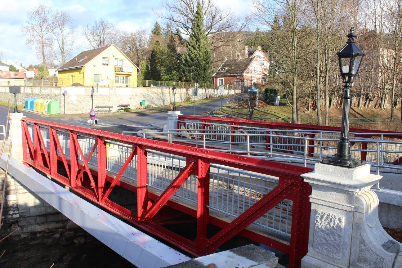| Most přes řeku BělouTechnická památka z ocelové příhradové mostní konstrukce, která je charakteristická nýtovanými spoji, původně sloužila jako spojnice města s Českou Vsí a byla nazývána Ovčí most. Parkování Bezpłatny parking przy budynku na ulicy Husova 191/2. | Ve Smetanových sadech naleznete naučnou stezku po pramenech, která vás na sedmi zastaveních provede vás historií lázeňství na Jesenicku. Obtížnost: lehká Čas: 46 minut Délka: 2.41 km Stoupání: 87 metrů Klesání: 87 metrů Nejvyšší bod: 520 m.n.m. Nejnižší bod: 433 m.n.m. | | | Rejvíz je osadou nedaleko města Jeseníku nabízí mnoho krás, mezi nimi vyniká Velké mechové jezírko či typická rejvízská zástavba. Obtížnost: středně těžká Čas: 244 minut Délka: 13.41 km Stoupání: 528 metrů Klesání: 200 metrů Nejvyšší bod: 916 m.n.m. Nejnižší bod: 433 m.n.m. | | | Už samotný název okruhu napovídá, že hlavním cílem této trasy je užít si výhledy do jesenické krajiny. Obtížnost: středně těžká Délka: 22.59 km | | | Velmi oblíbený okruh z Jeseníku po vyhlídkách Křížový vrch, Zlatý chlum, Čertovy kameny.Vyhlídkový okruh nabízí krásné pohledy na město Jeseník, hřeben Jeseníků či na polské n ... (více) Obtížnost: středně těžká Čas: 170 minut Délka: 8.48 km Stoupání: 438 metrů Klesání: 438 metrů Nejvyšší bod: 871 m.n.m. Nejnižší bod: 433 m.n.m. | | | Tento okruh prochází městem Jeseník, jesenickými lázněmi a Českou Vsí a nabízí to nejlepší z krás Jeseníku a jeho okolíOkruh nabízí krásná vyhlídková místa, množství pramenů, ... (více) Obtížnost: středně těžká Čas: 341 minut Délka: 16.30 km Stoupání: 874 metrů Klesání: 874 metrů Nejvyšší bod: 871 m.n.m. Nejnižší bod: 407 m.n.m. | | | Jeden ze dvou pěších okruhů městem Jeseník, který Vás provede po historických památkách lázeňského města Jeseník. Obtížnost: středně těžká Čas: 35 minut Délka: 2.13 km Stoupání: 46 metrů Klesání: 46 metrů Nejvyšší bod: 479 m.n.m. Nejnižší bod: 433 m.n.m. | | |
