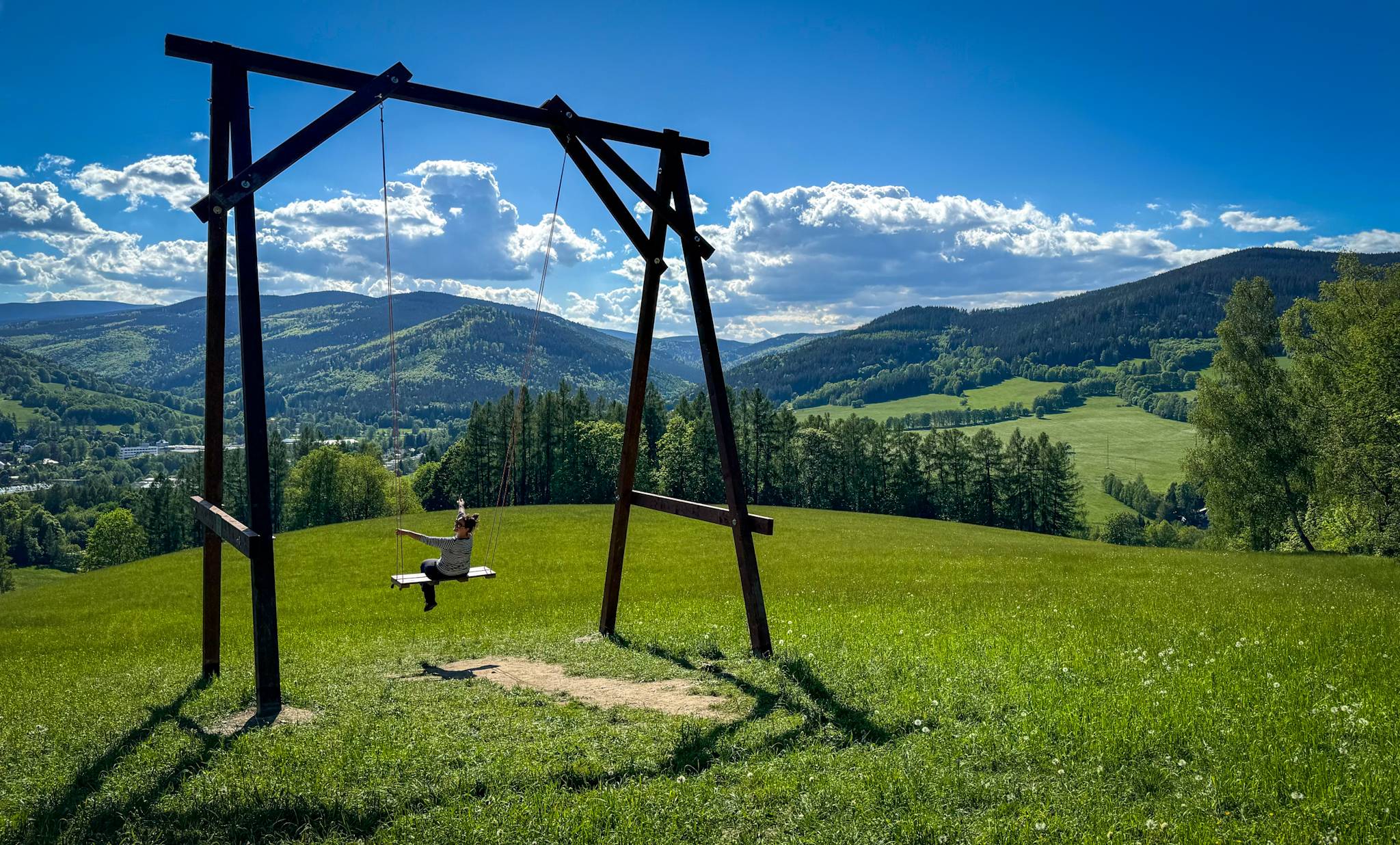 aktuálně -4.5 °C skoro jasno 23.01. | zataženo | -1.9 °C 24.01. | mírné sněžení | -1.2 °C 25.01. | zataženo | 0.7 °C | Fotopoint obří houpačkaJeden ze tří fotopointů nad Vrbnem najdete nad Střelniční chatou v místní části Mnichov (z centra vás přiblíží modrá turistická trasa směr Zlaté Hory). Jedná se o velkou houpačku s krásnými výhledy na Vrbno pod Pradědem. Sdílejte své fotografie z tohoto místa pod #vrbnonadlani. 0%