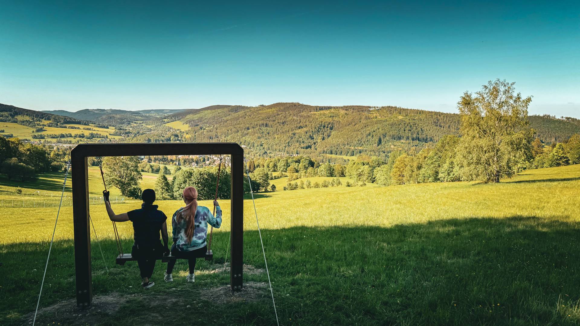 Fotopoint houpačkaJeden ze tří fotopointů nad Vrbnem najdete kousek vlevo nad Mirkovým pramenem (červená turistická trasa vedoucí z centra města směrem na Anenský vrch). Jedná se o houpačku s krásnými výhledy na Vrbno pod Pradědem. Sdílejte své fotografie z tohoto místa pod #vrbnonadlani. 0%