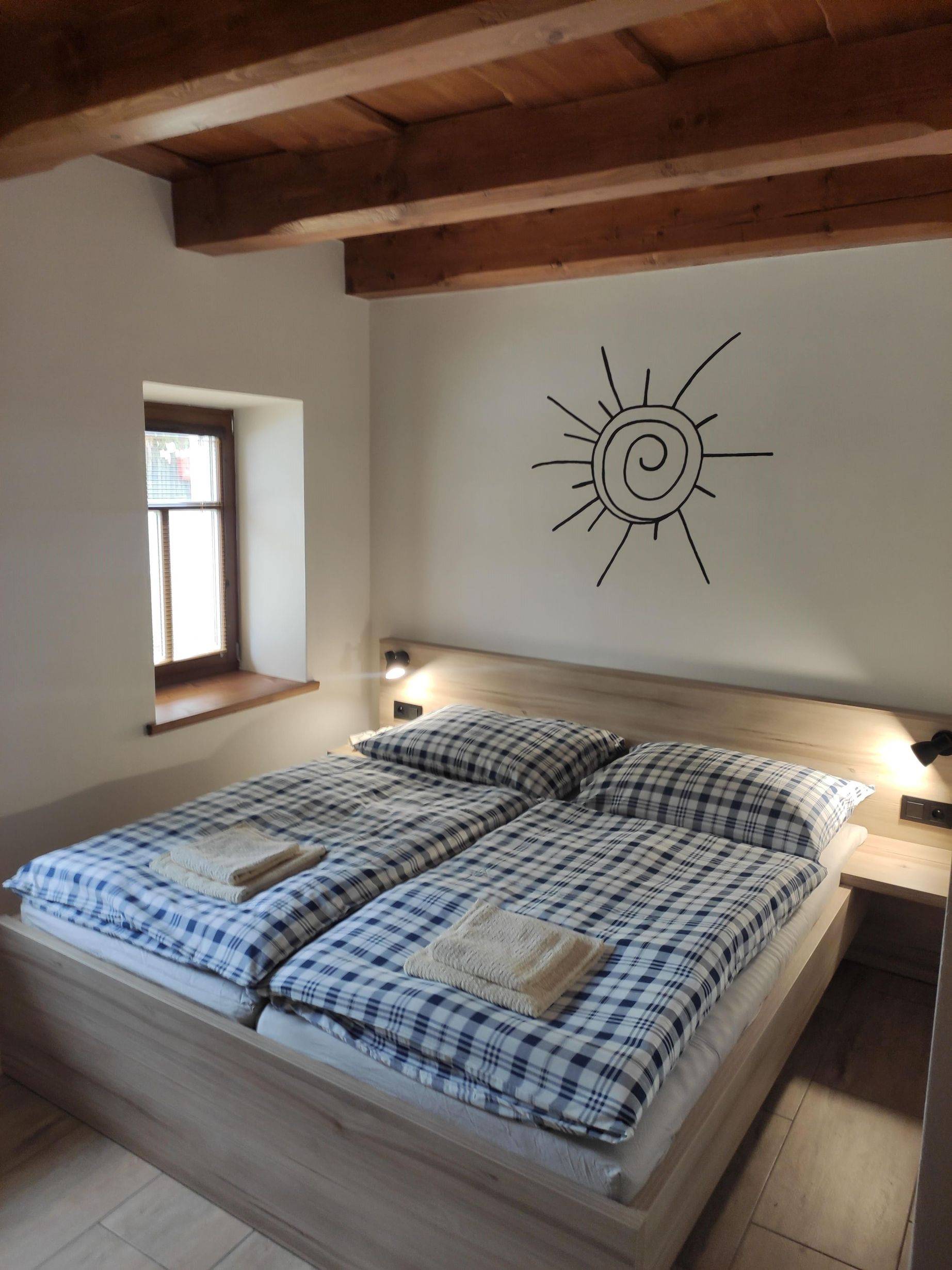 | aktuálně -0.4 °C skoro jasno 20.01. | jasno | -5.4 °C 21.01. | jasno | -4.8 °C 22.01. | jasno | -5.5 °C | Chalupa 40 (Ruda nad Moravou - Hostice)Hledáte místo, kde si odpočinete, užijete si přírodu a přitom budete mít maximální komfort? Vítejte na Chalupě 40 v obci Ruda nad Moravou, Hostice – nově zrekonstruované chalupě, kde se snoubí tradiční atmosféra s moderním vybavením. Chalupa ubytuje až 13 hostů – k dispozici je 10 pevných lůžek, 3 výsuvná lůžka a rozkládací sedačka. Díky čtyřem ložnicím je ideální pro tři rodiny – každý manželský pár má své soukromí a děti jeden velký společný pokoj. Na chalupě je k dispozici klasická finská sauna, která je umístěna venku, doplněná o venkovní odpočívárnu se stylovou vanou a sprchou. V letních měsících je k dispozici také venkovní bazén, což z ní činí ideální místo pro odpočinek a relaxaci. K tomu přispívá i prostorná zastřešená terasa s posezením a možností grilování na plynovém grilu. Nechybí ani ohniště pro opékání špekáčků nebo přípravu kotlíkového guláše a sklepní posezení s příjemných chladem. Zahrada je rozlehlá, oplocená, a za jejím plotem protéká potůček. Děti potěší dřevěný domeček se skluzavkou, houpačky, pískoviště... Pro společné chvíle je k dispozici stolní fotbálek, šipky nebo obří kostky a domino. Sportovně založené hosty potěší uzamykatelná kolárna a lyžárna. Jen 3 minuty chůze od chalupy se nachází multifunkční hřiště (tenis, nohejbal, volejbal, basket) a areál Koliba (fotbalové a dětské hřiště), kde si na své přijdou jak děti, tak dospělí. V zimních měsících: 3 kilometry od chalupy se nachází Štědrákova Lhota se skiareály Turek a Panorama. Pohodlně se tam dostanete kyvadlovým autobusem. Z této lokality bývá upravovaná běžecká trasa směrem na Severomoravskou chatu. Chalupa je krásná po celý rok – na jaře vás okouzlí rozkvetlá příroda, na podzim zase pestrobarevné listí a klidné procházky okolní krajinou. V každém ročním období tu najdete prostor pro relaxaci i aktivní odpočinek. Ideální lokalita pro výlety, houbaření, cyklistiku i lyžování v okolí Jeseníků. Chalupa 40 - v Rudě nad Moravou nabízí ubytování pro 2 až 13 osob ve 4 ložnicích. 0%