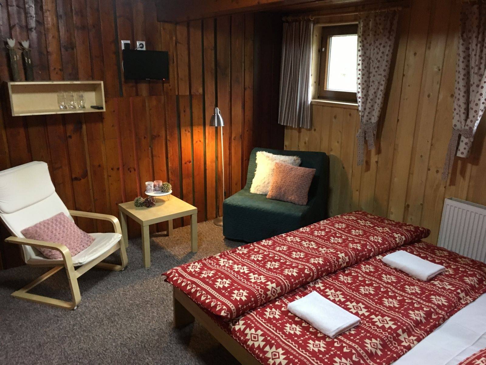 Kapacita penzionu je 36 lůžek, vytápěn je centrálně s rozvody ÚT a centrálním ohřevem teplé vody. Každý pokoj či apartmán má vlastní koupelnu a WC. Stravování je řešeno formou polopenze v dobře vybavené kuchyni, případně je možno objednat jen snídaně formou bufetu. V létě pak je možnost grilování pod krytou pergolou případně opékání "buřtů" u horského potoka. K dispozici je restaurace s barem, posezení na kryté terase, minikuchyňka s lednicí, varnou konvicí a mikrovlnou troubou včetně nádobí, dětské hřiště se skluzavkou a houpačkou, trampolína, stolní fotbálek, dětský koutek. Svou polohou je penzion vhodný pro sjezdové lyžaře, běžkaře, turisty, cyklisty, k dispozici je volejbalové hřiště s antukou. Parkování u objektu na vlastním pozemku je střeženo kamerovým systémem a pro ubytované bez poplatku.V objektu se pohybujeme jen v domácí obuvi.