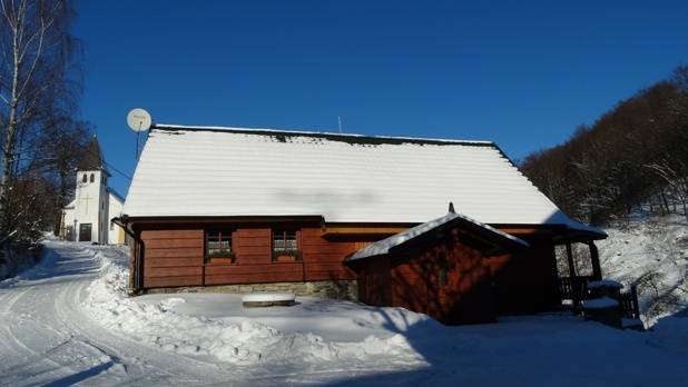 Stylová, moderně, vybavená roubená chalupa v Jeseníkách, obec Štědrákova Lhota.