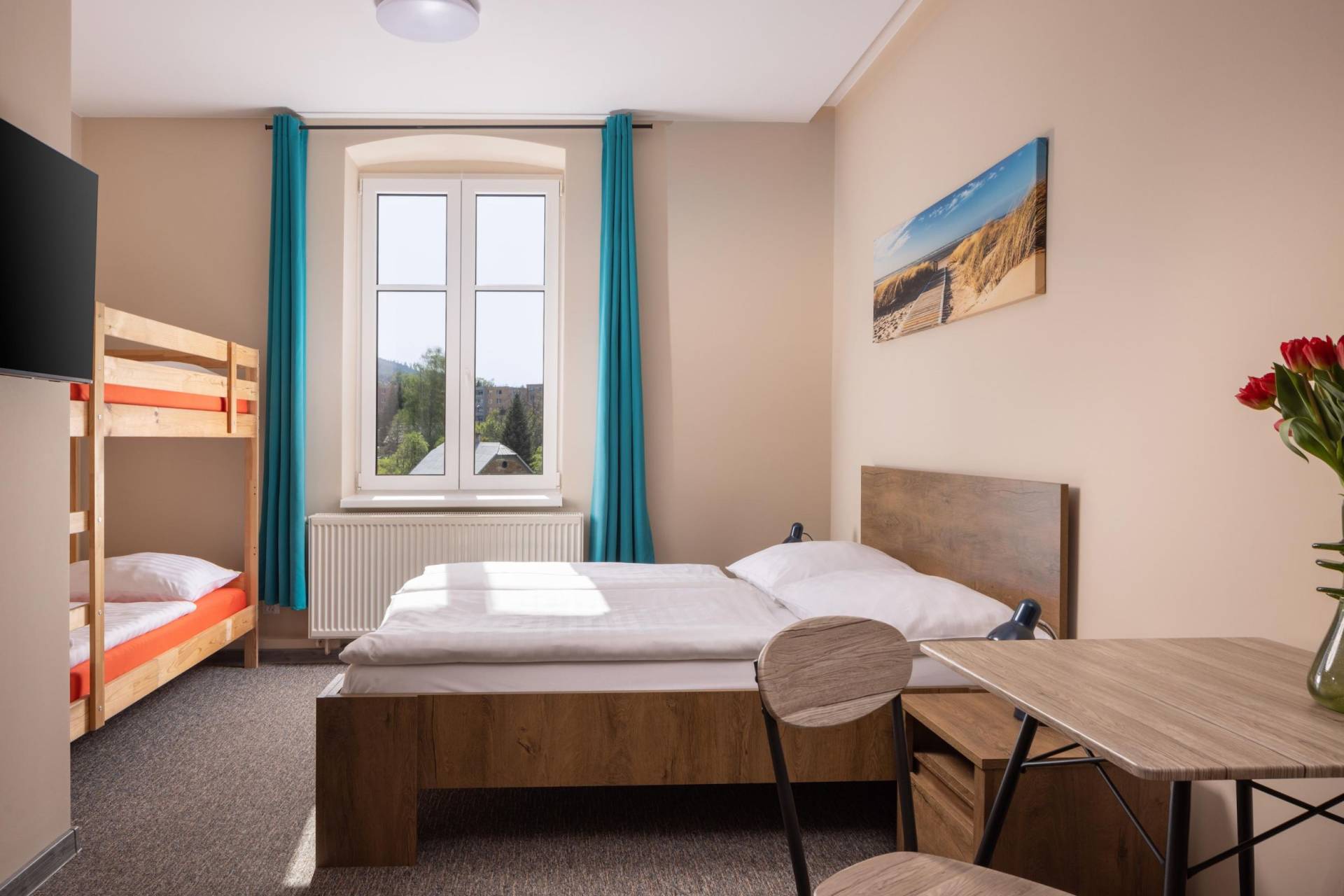 V ceně ubytování získáte také bohatou snídani formou bufetu a vstup do hotelového wellness zdarma. Wellness centrum disponuje dvěma saunami, vířivkou, bazénem s protiproudem a relaxační zónou nebo můžete vyzkoušet některou z nabízených masáží. Každý pokoj má vybavenou koupelnu, kde naleznete připravenou značkovou kosmetiku, osušky i ručníky. Dále mate k dispozici barevnou televizi, minibar s nabídkou alko i nealko nápoji i psací stůl. Wifi je zdarma k dispozici v celém areálu hotelu. Hosté mohou též využít levnější variantu ubytování v penzionu Thamm Zlaté Hory. V penzionu pro vás máme k dispozici celkem 10 útulných dvou až čtyřlůžkových pokojů, které jsou zařízeny podobně jako naše hotelové pokoje. Disponují vlastní zcela novou moderní koupelnou se sprchou a WC. Wi-Fi a Smart TV na pokoji. Penzion je s hotelem spojený zastřešeným průchodem a hosté mají možnost využít kompletního zázemí. V hotelové restauraci, která je součástí hotelu, můžete ochutnat vybrané pokrmy z české, ale i mezinárodní kuchyně. A večer doporučujeme navštívit Thamm Bar s unikátní rumotékou s nabídkou více než 55 druhů rumů, ale také širokou nabídkou piva a vína. Hotel Praděd ve Zlatých Horách se též specializuje na organizaci, svateb, firemních akcí, konferencí nebo teambuildingu. Více info na webu.