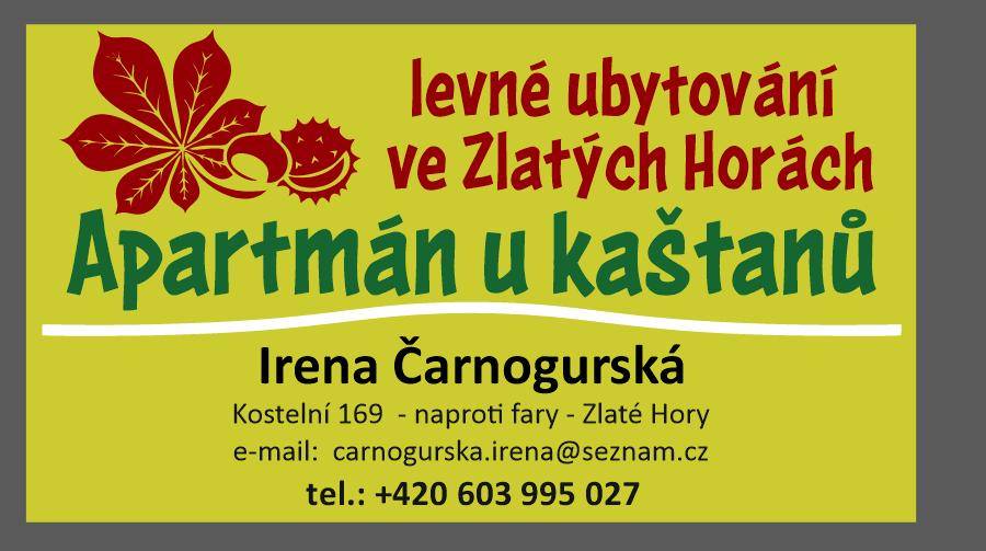 Nabízím levné ubytování v přízemí RD v klidné části Zlatých Hor. Byt 2+1 je po kompletní rekonstrukci. Max. kapacita je 6 lidí. Ložnice 4 lůžka, tj. výsuvná patrová postel + válenda, obývák 2 rozkládací gauče 1,5 lůžka. Kuchyně je vybavená nádobím, varnou konvicí, mikrovlnou troubou a ledničkou. Koupelna má sprchová kout s WC.