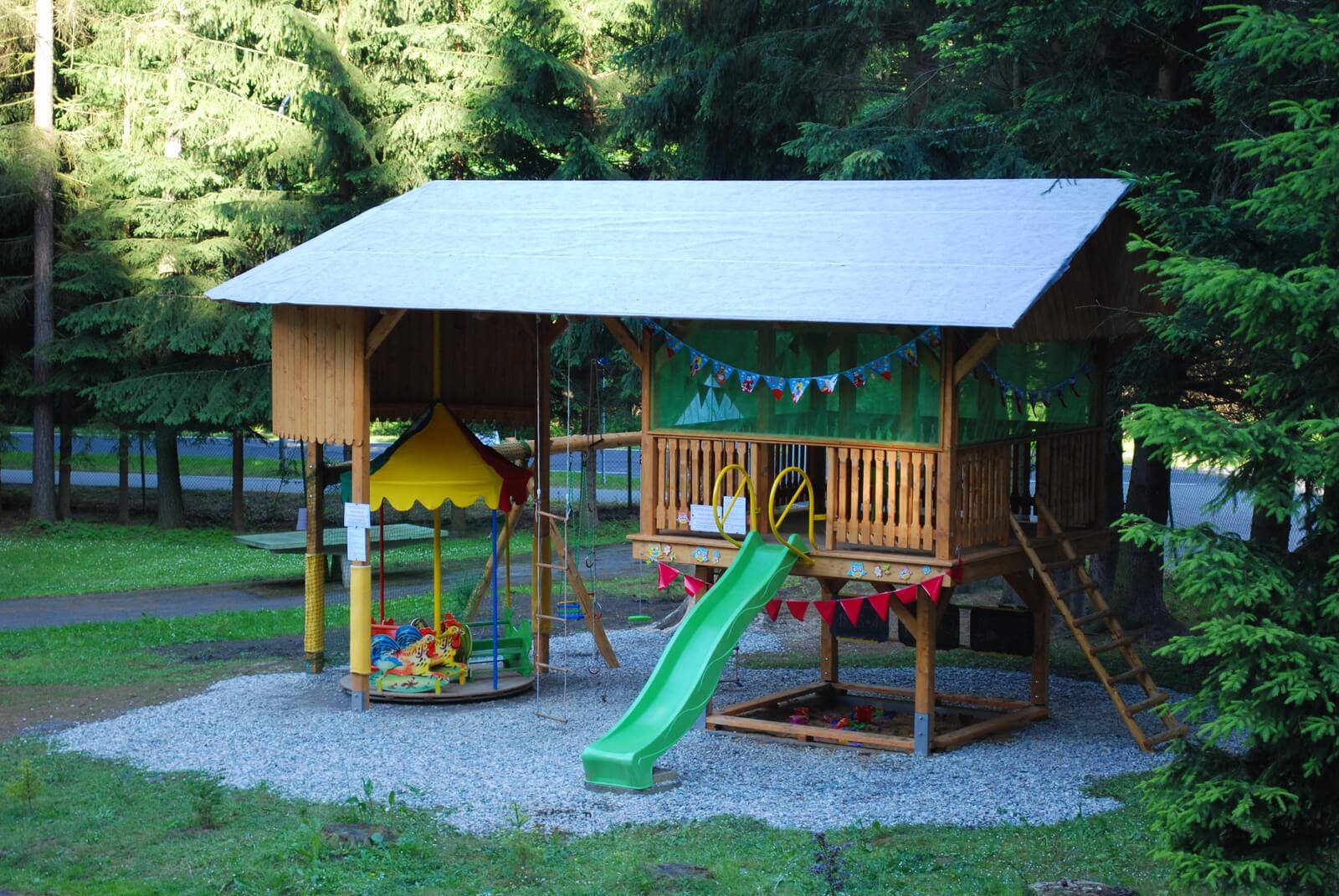 Příprava jídel je možná v kuchyňce, která je vybavená vařiči, lednicemi a mikrovlnou troubou. V areálu je bufet s rychlým občerstvením. Pro Vaše děti je zde dětský koutek s kolotočem pro nejmenší, skluzavkou a pískovištěm. Možnost zapůjčení pingpongových, softbalových, badmintonových raket, pétanque, kroket.