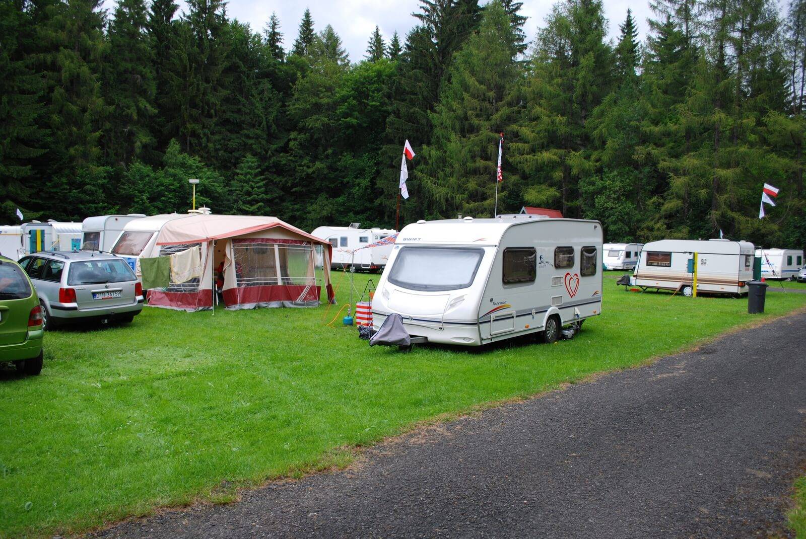 Dále možnost ubytování ve vlastních stanech (cca 80 míst) a karavanech (40 elektrických přípojek) - není potřeba objednávat místo předem. Areál je vybaven společným sociálním zařízením s WC, sprchou s teplou vodou na žetony, společenskou budovou a ohništěm. V areálu kempu se nachází bufet s rychlým občerstvením a nápoji.