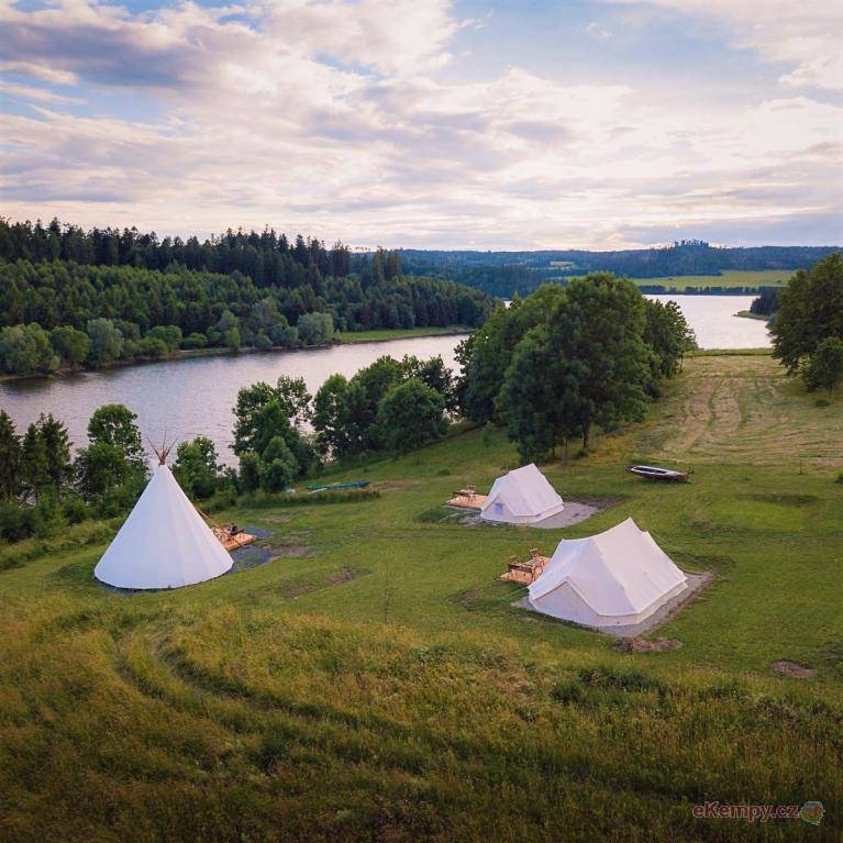 V glampu je pět glampingových stanů v dostatečné vzdálenosti od sebe pro zachování soukromí. Všechny jsou vybaveny moderně, pohodlně a v souladu s přírodou. Ve stanech různých velikostí najdete pohodlné postele, posezení, a drobný nábytek. Před stanem se nachází terasa s venkovním posezením a výhledem na přehradu.