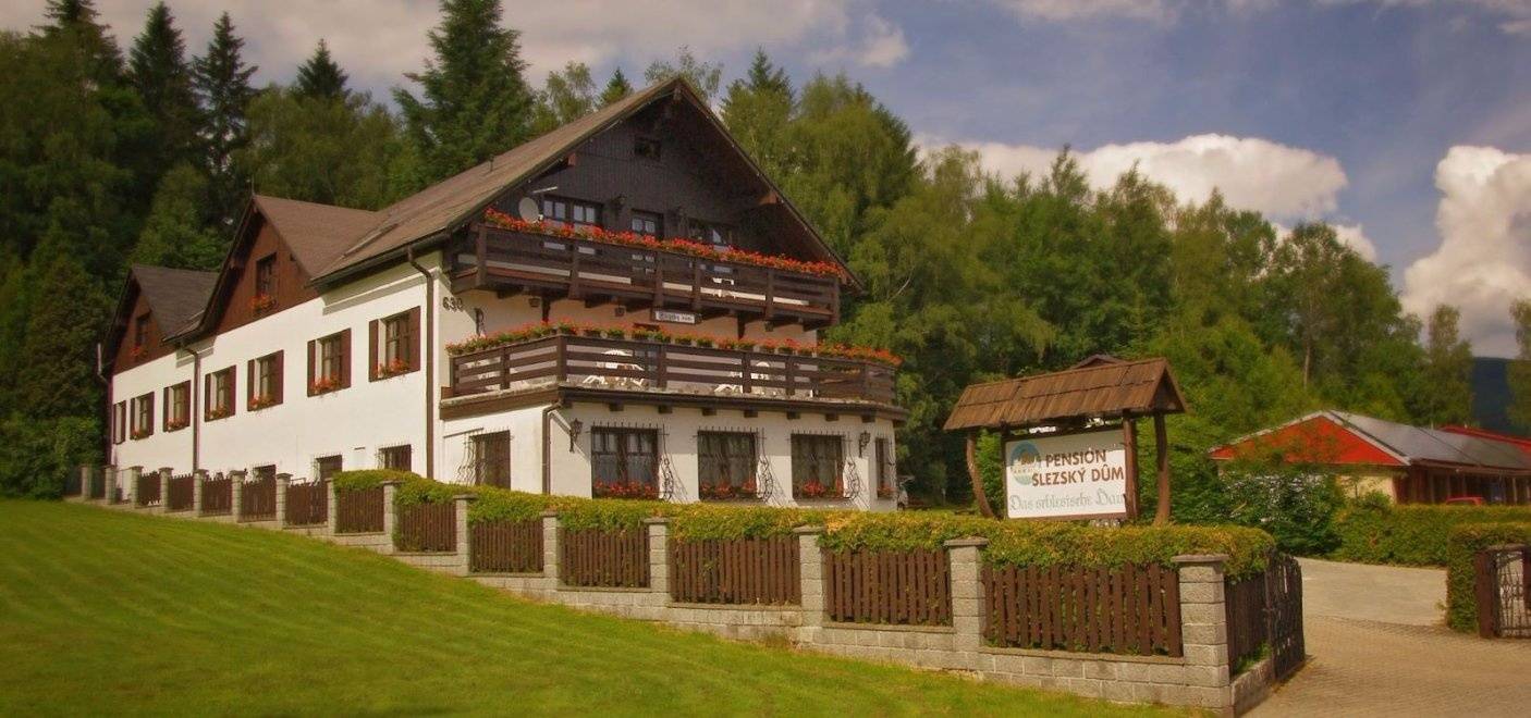 Penzion Slezský dům stojí na okraji města Jeseník, v samotném srdci Jeseníků, obklopen z jihu masívem Hrubého Jeseníku a ze severu pohořím Rychleby.