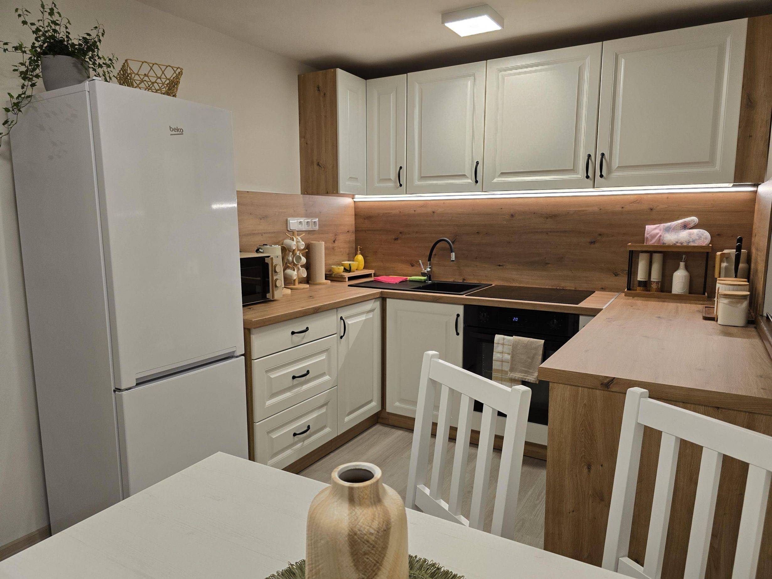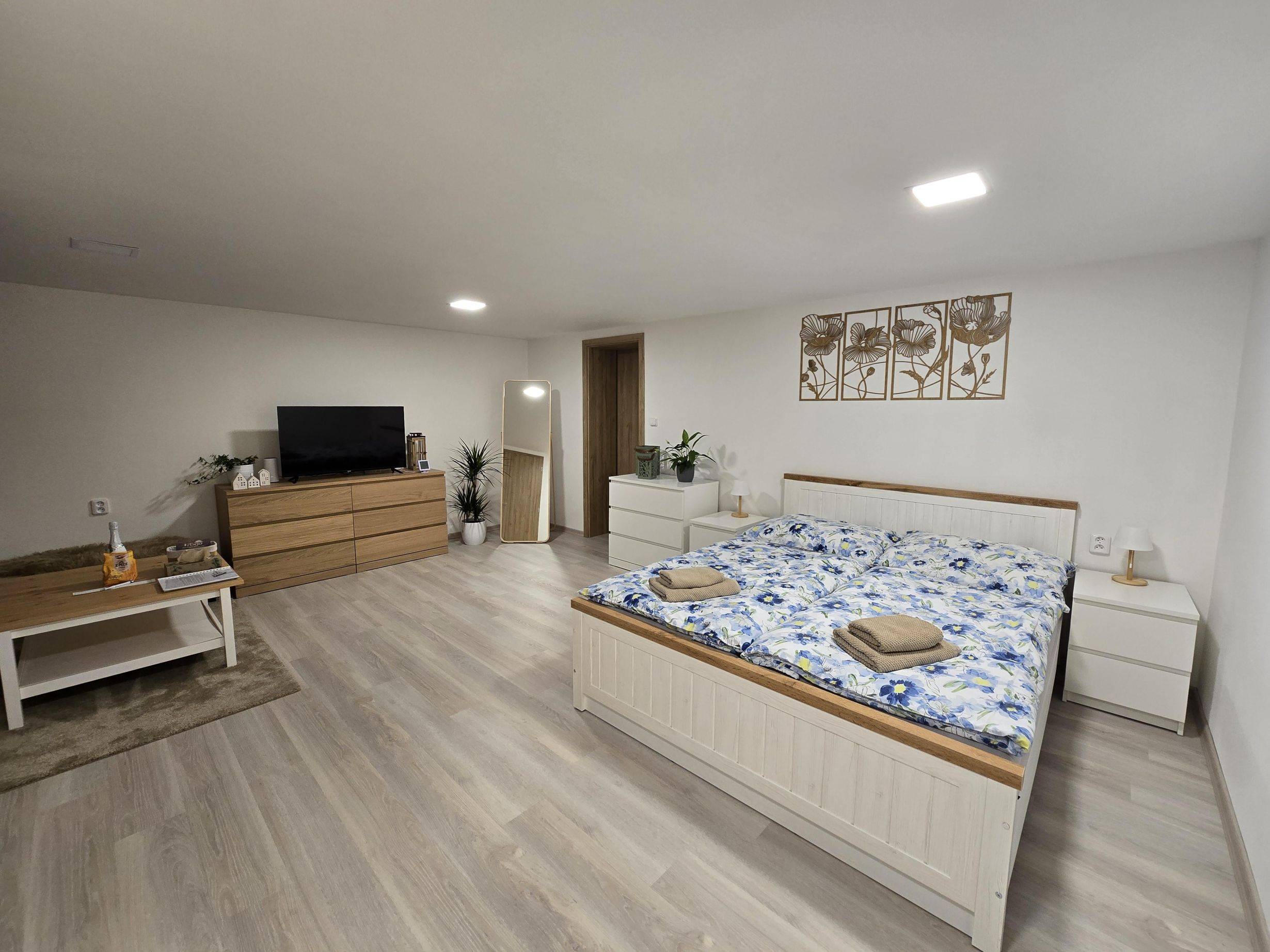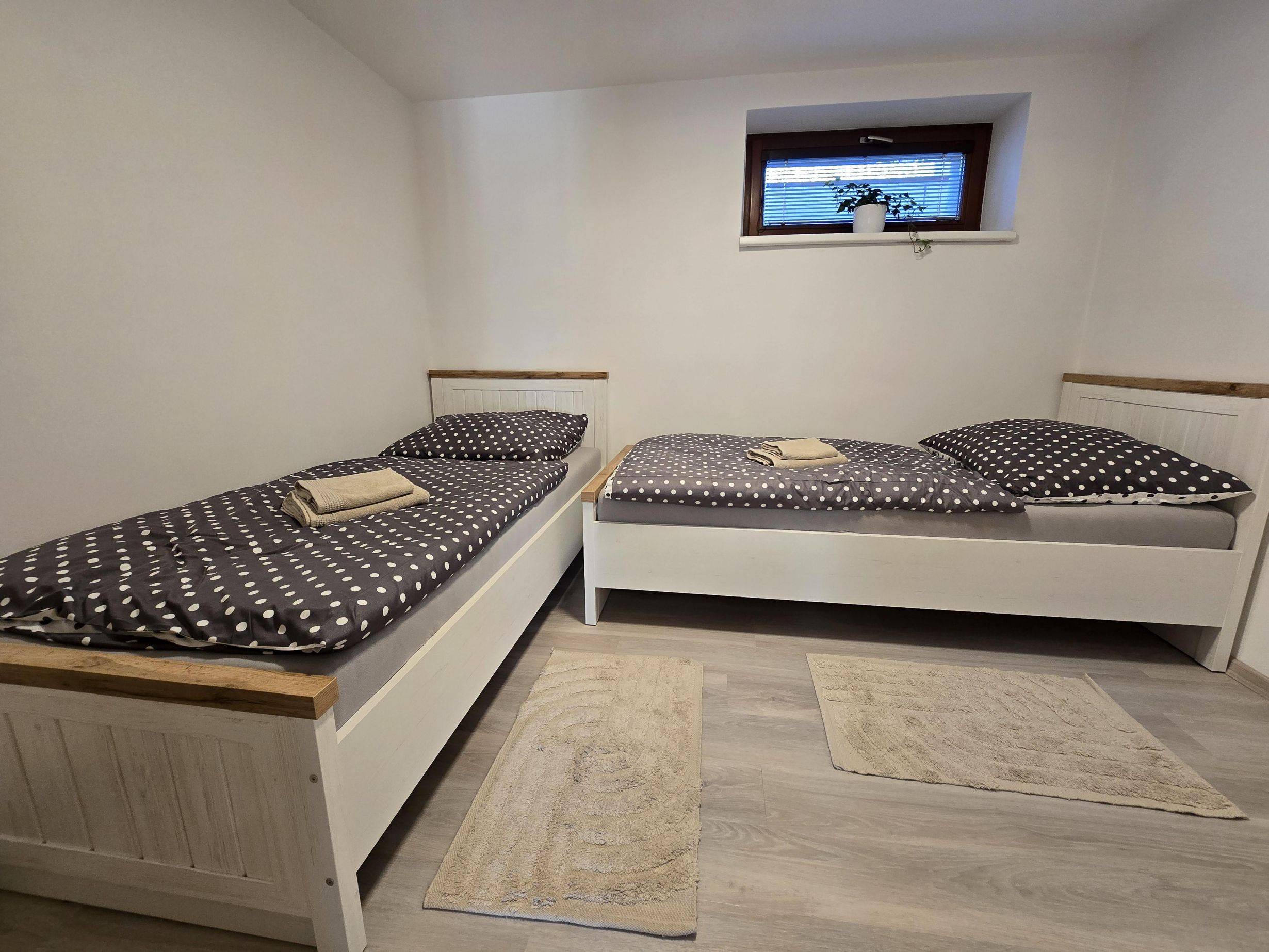 Celkově nabízí ubytování až pro 5 osob. K dispozici jsou 2 dvoulůžkové postele a po předchozí domluvě je možné připravit i 1 přistýlku.
