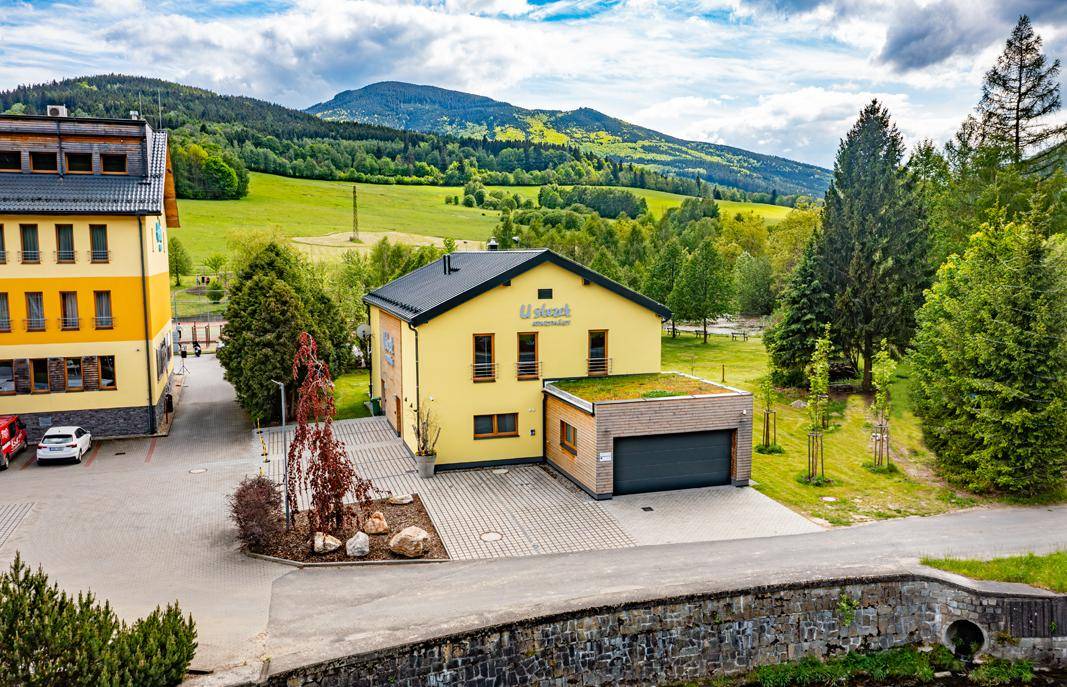 Apartmán A - je nadstandardně vybaven. Ubytovací kapacita je 10 lůžek. Suterén apartmánu disponuje předsíní (věšáková stěna, vysoušeč bot, lyžáků), obývacím pokojem (sedací souprava s TV, velký jídelní stůl s židlemi, krbová kamna, vstup na velkou zastřešenou terasu s posezením a grilem), plně vybavená kuchyně (trouba, varná deska, myčka na nádobí, mikrovlnná trouba, kávovar, topinkovač, 2x lednice, pračka), toaleta. Na pozemku je venkovní terasa se zastřešením a zahradním nábytkem, zahrada s kolárnou/lyžárnou. V prvním patře se nachází 3x dvoulůžkový pokoj, 1x čtyřlůžkový pokoj,